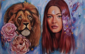 Portretten van jonge vrouwen in een surrealistische, abstracte stijl. Gecombineerd met bloemen of dieren